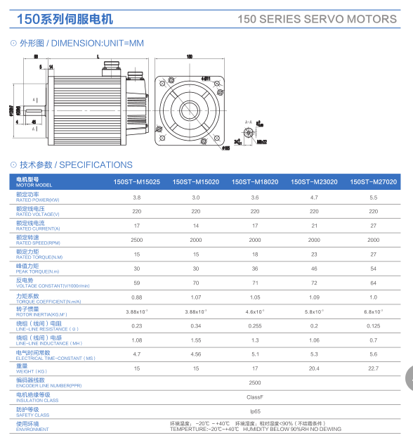 150 series AC servo motor parameter details